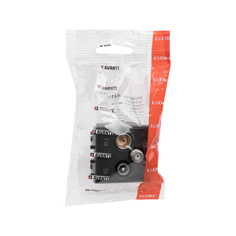 Розетка TV-FM-SAT модульная, "Avanti", "Черный матовый", 2 модуля