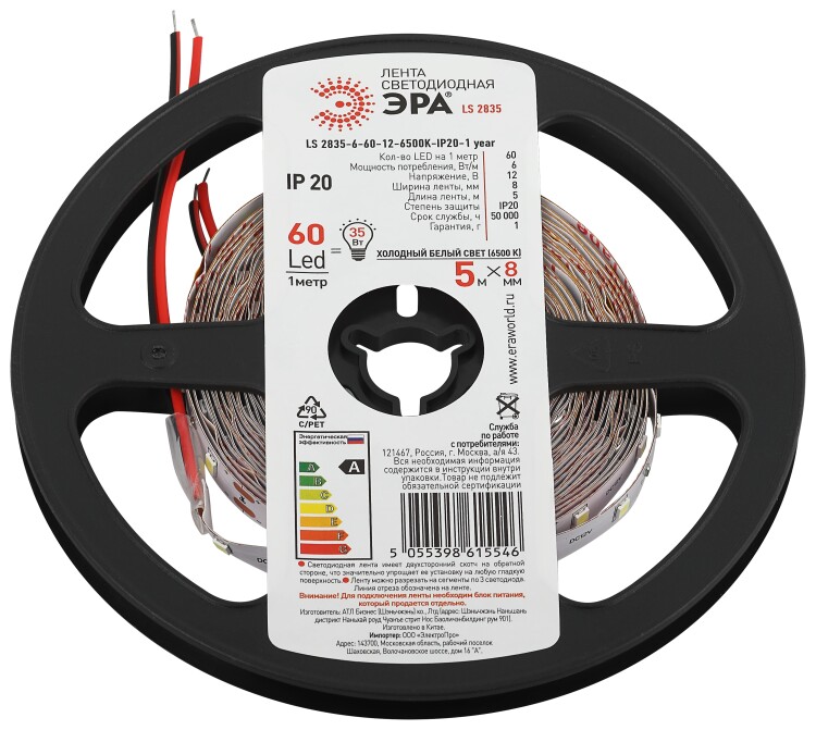 Светодиодная лента ЭРА LS2835 6-60-12-6500K-IP20-1 year-5m холодный белый свет