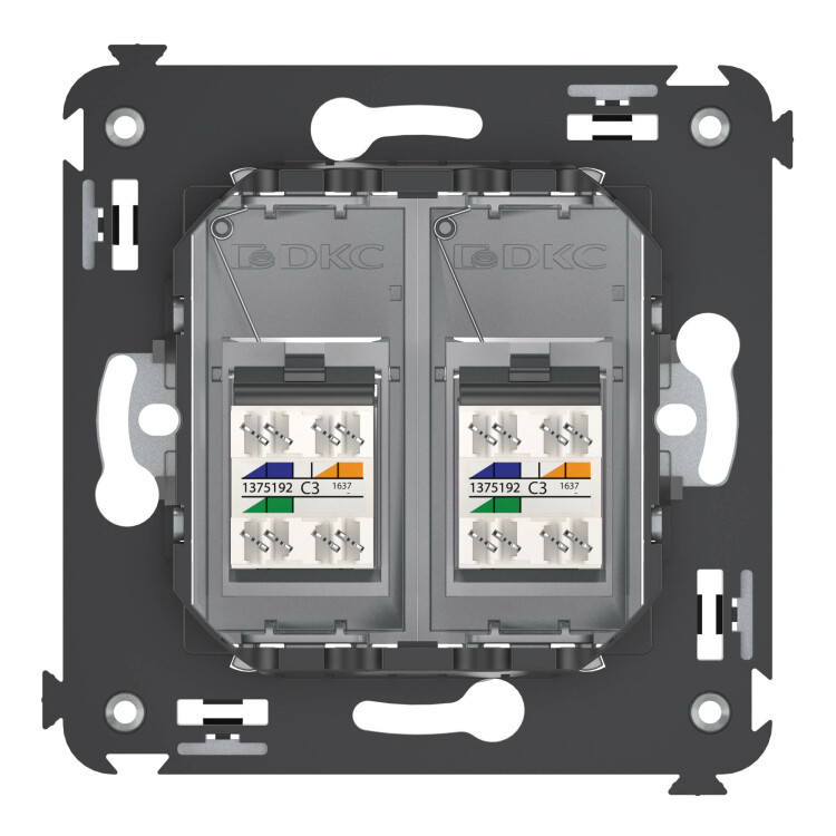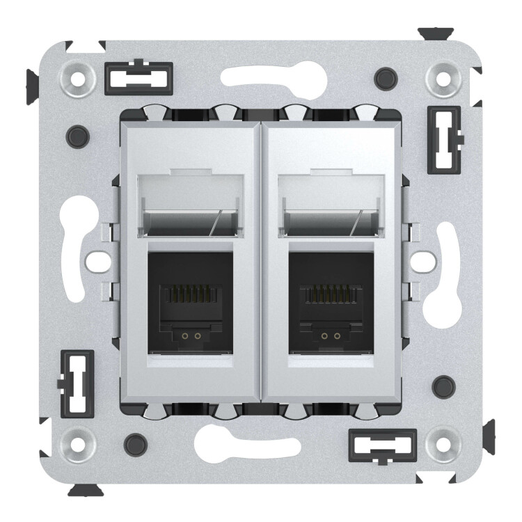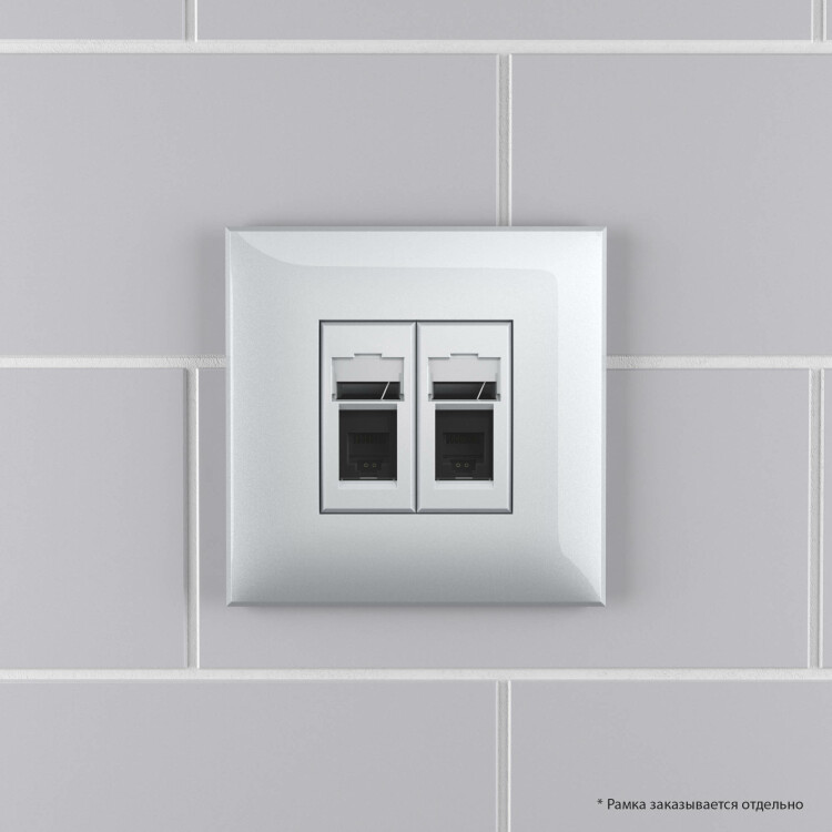 Телефонная розетка RJ-12 в стену двойная, "Avanti", "Закаленная сталь"