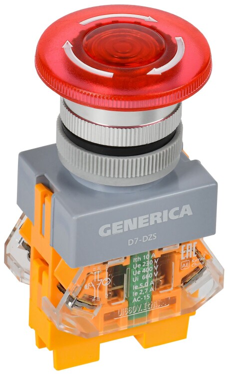 Кнопка D7-DZS "Грибок" d=22мм 1NC+1NO пов. п/ф кр. GENERICA