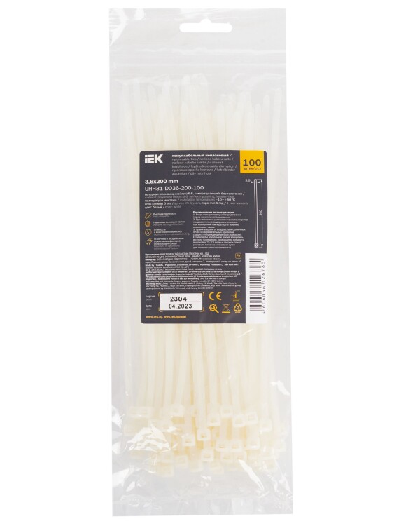 Хомут кабельный полиамид 3,6х200 мм стандартный 6.6 (-30С+80С) белый (упак.100шт.)