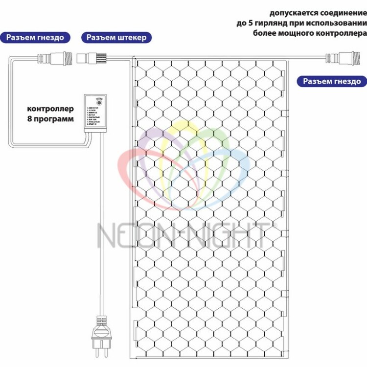 Гирлянда светодиодная Сеть 2,5x2,5м 432 LED БЕЛЫЙ черный ПВХ IP65 свечение с динамикой 230В контроллер в комплекте NEON-NIGHT