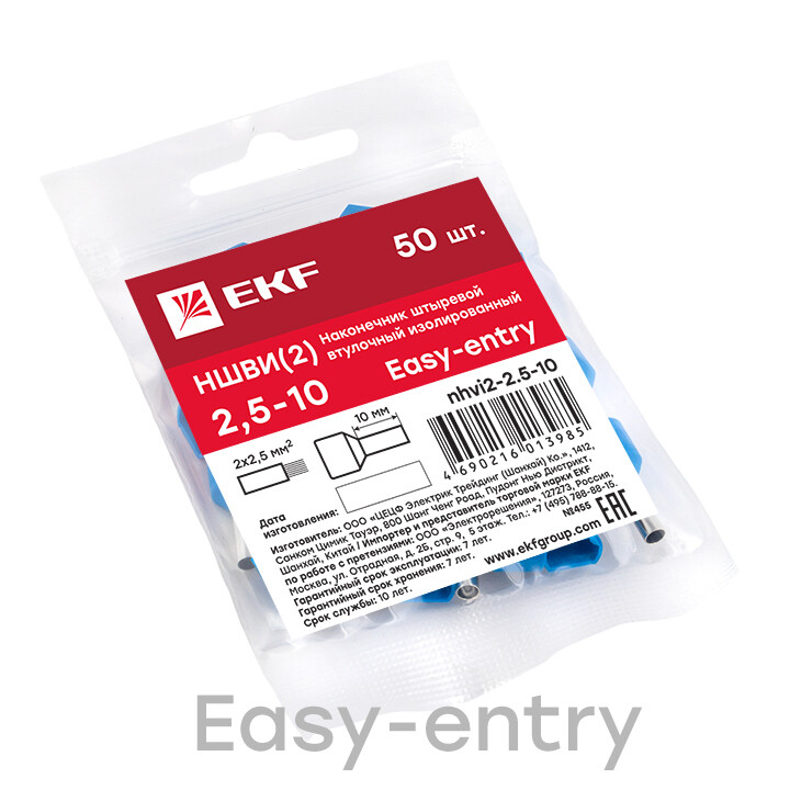 Наконечник-гильза изолир. двойной 2.5-10 мм (упак. 50шт) НШВИ(2) 2,5-10