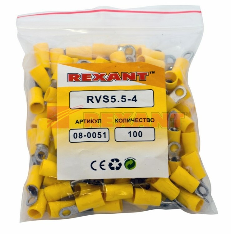 Наконечник кольцевой изолированный ø 4.3 мм 4-6 мм² (НКи 6.0-4/НКи5,5-4) желтый REXANT