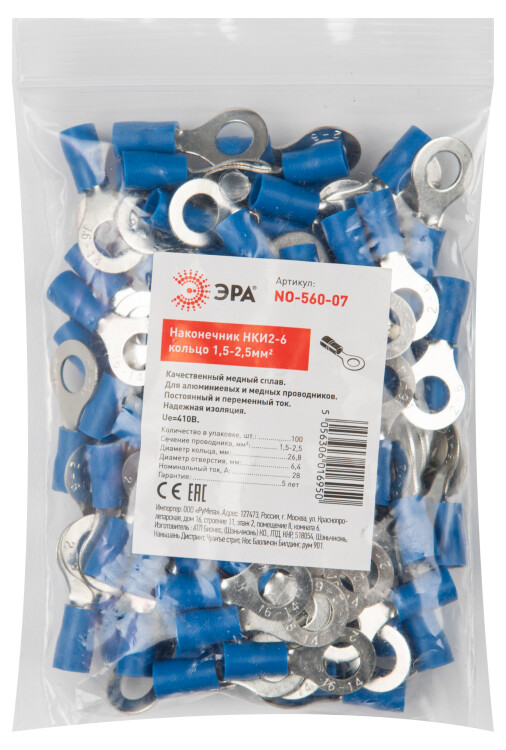 Наконечник ЭРА NO-560-07 НКИ2-6 кольцо 1,5-2,5мм упаковка 100 шт