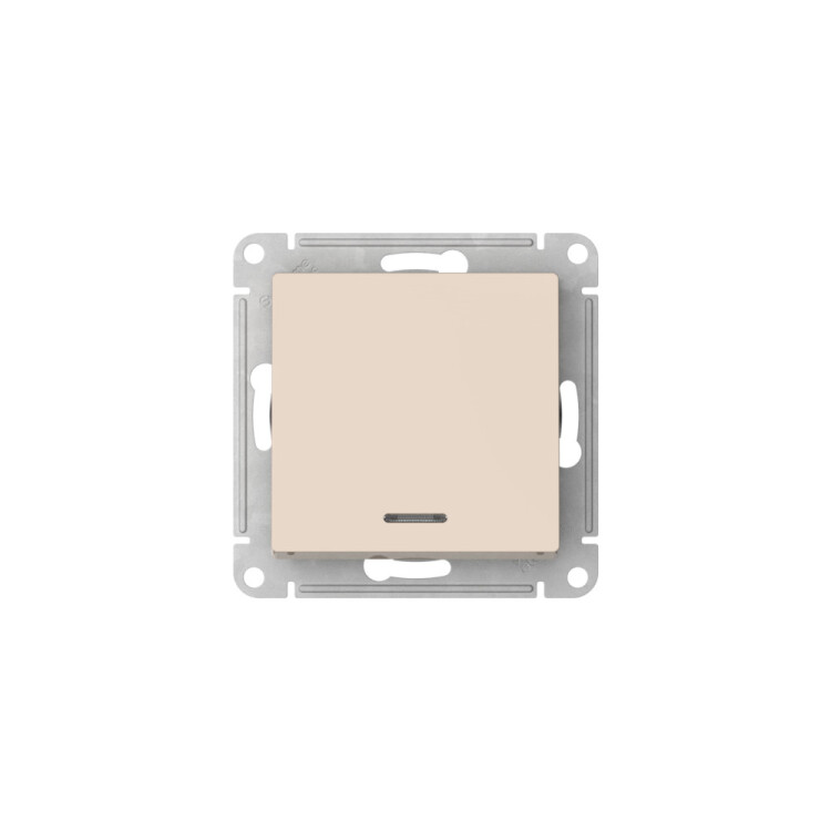 ATLASDESIGN 1-клавишный ПЕРЕКЛЮЧАТЕЛЬ с подсветкой, сх.6а, 10АХ, мех., быстрозажим. клем., БЕЖЕВЫЙ