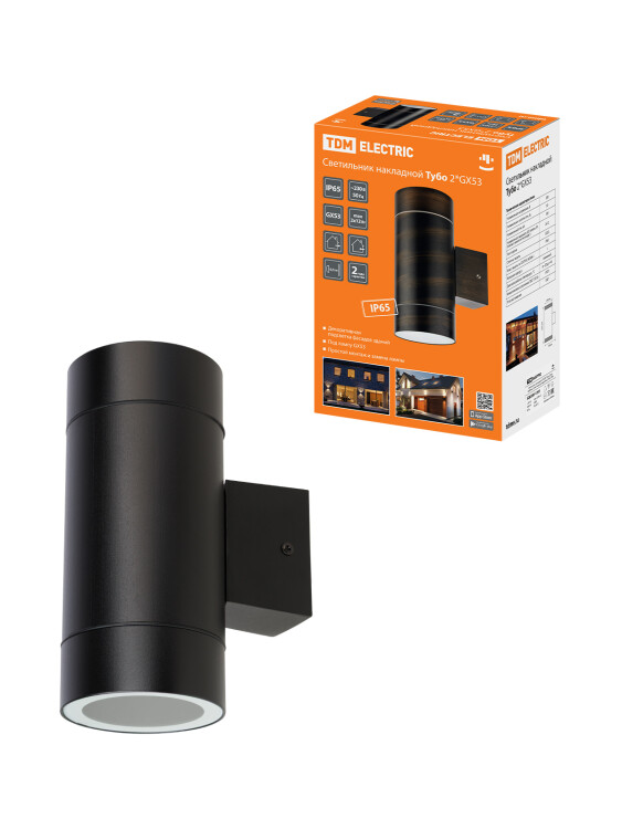 Светильник накладной 2*GX53 Тубо, 230 В, H200 мм, алюм/черный, вверх/вниз, IP65, TDM