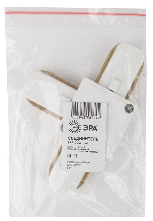 Коннектор ЭРА TR7-C 2W T WH для однофазного шинопровода Т-образный белый