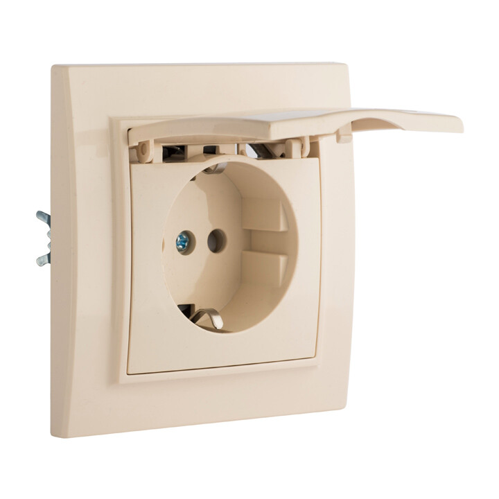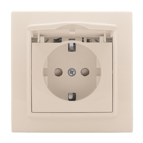 Розетка 1-местная СП с/з Минск с крышкой 16А бежевая с защ. штор. EKF