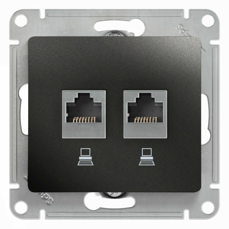 Розетка компьютерная 2хRJ45 кат.5E антрацит Glossa