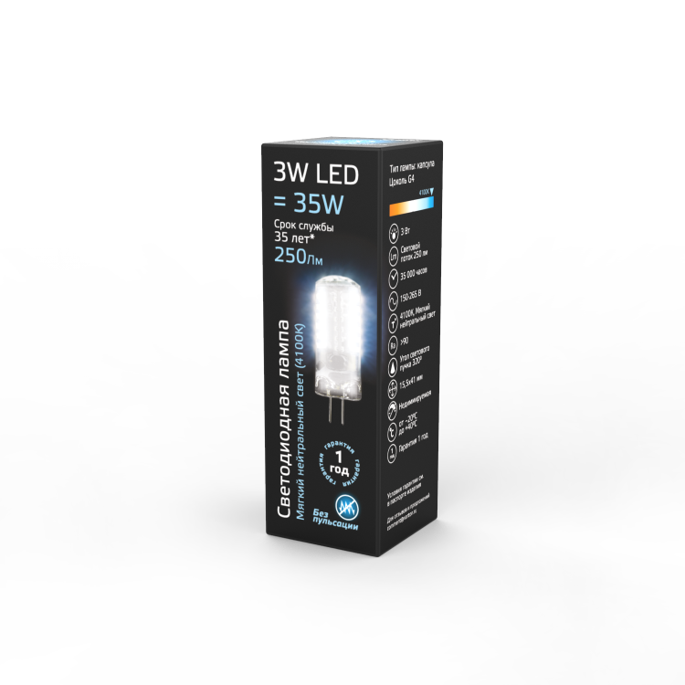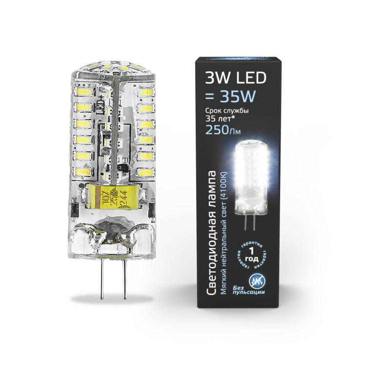 Лампа светодиодная 3 Вт 150-265V G4 силикон 4100K холодный белый
