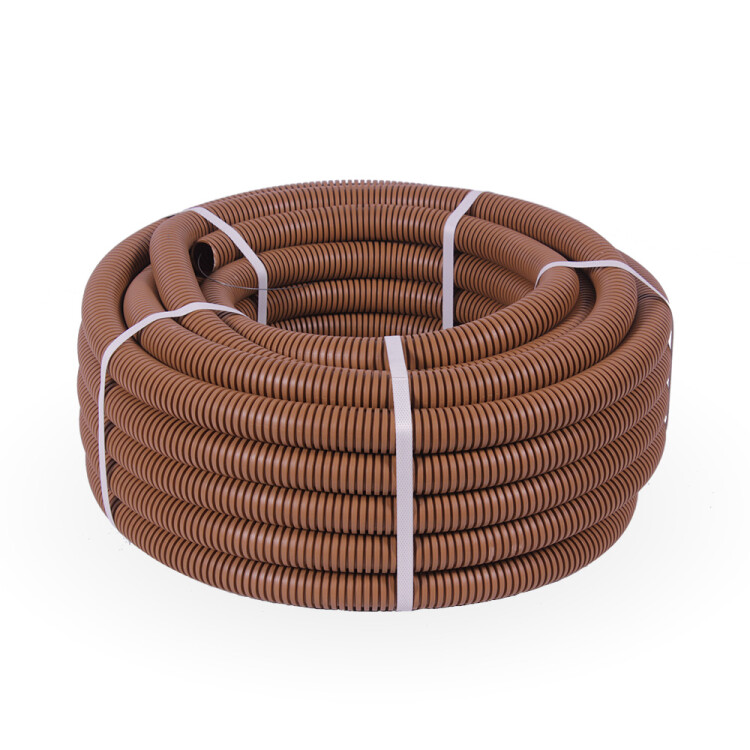 Труба ПВХ гибкая гофрированная д.32 мм, лёгкая, с протяжкой, цвет бук, (Бухта 25м)