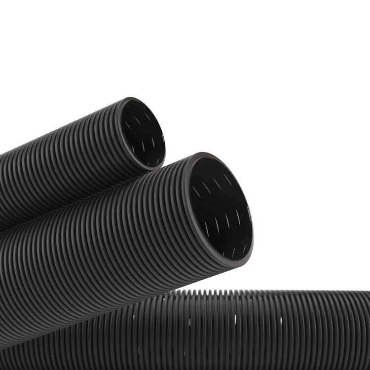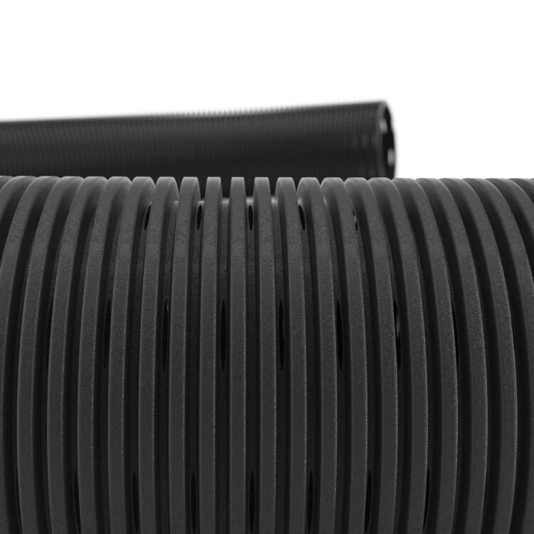Двустенная труба ПНД гибкая дренажная д.110мм, SN6, перфорация 360 град., в бухте 50м, цвет черный