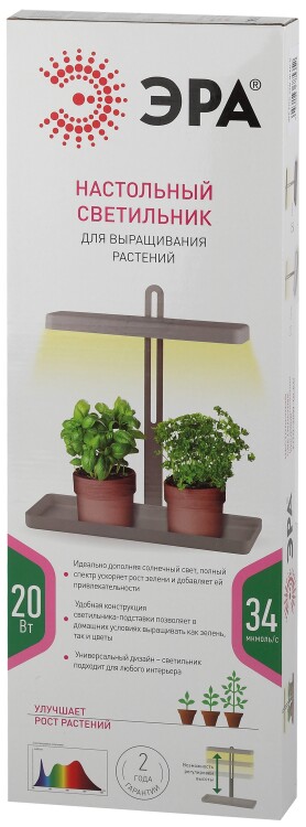 Настольный светильник для растений ЭРА FITO-20W-QLED-W полного спектра 20 Вт белый