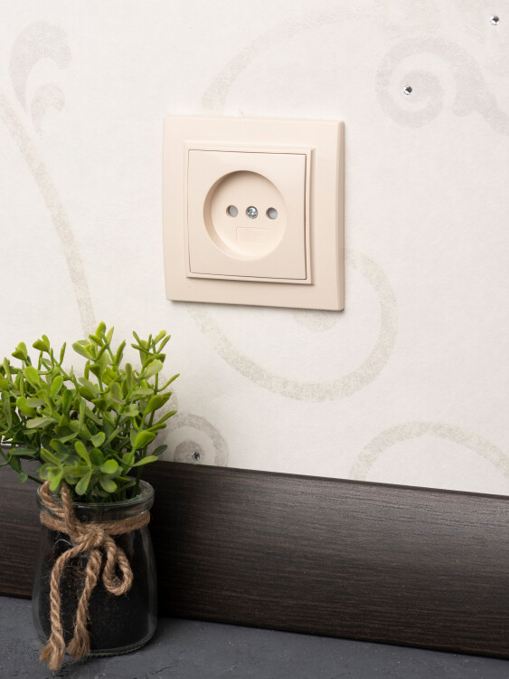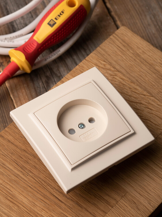 Розетка 1-мест. СП б/з 10 А с защ. штор. бежевый Минск EKF