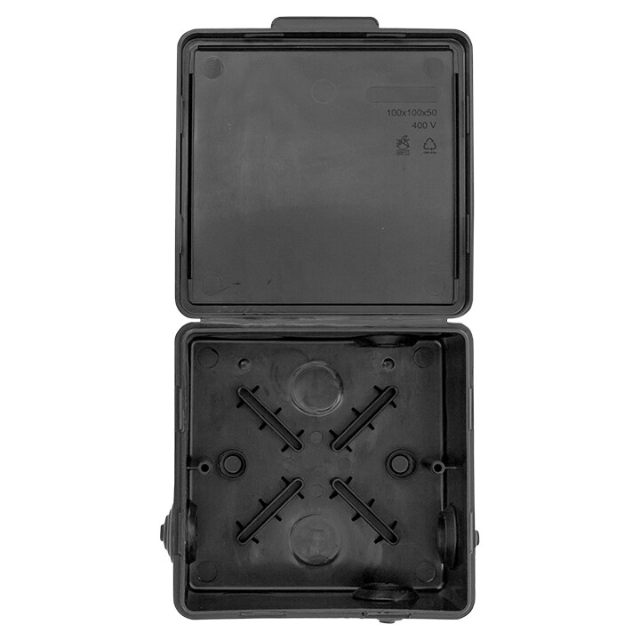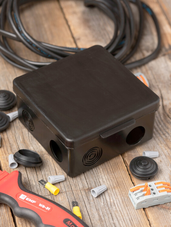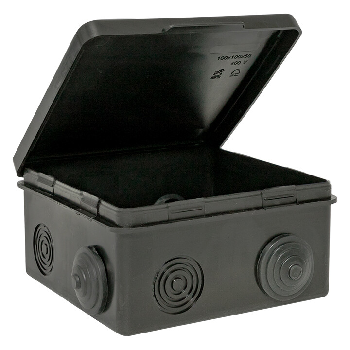 Коробка распределительная КМР-030-014 с крышкой (100х100х50) для прямого монтажа, 10 мембр. вводов чёрная IP55 розн. стикер EKF