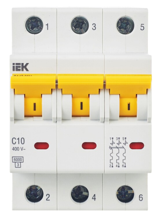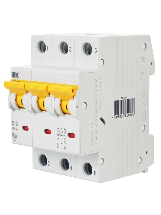 Автомат. выкл. 3-пол. 10А тип C 6кА серия ВА47-60M