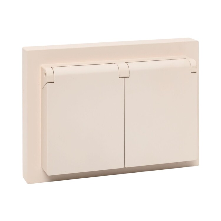 Механизм розетки двойной, 16А, IP44, с заземлением, со шторками, с рамкой, с крышками, кремовый Эпика EKF