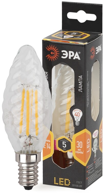 Лампочка светодиодная ЭРА F-LED BTW-5W-827-E14 Е14 / E14 5Вт филамент свеча витая матовая теплый белый свет