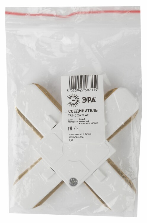 Коннектор ЭРА TR7-C 2W X WH для однофазного шинопровода Х-образный белый
