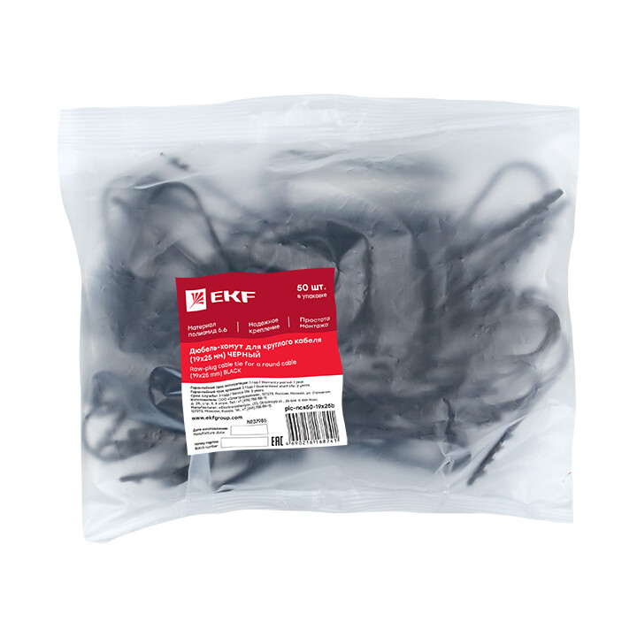 Дюбель-хомут для круглого кабеля (19-25мм) черный (50шт.) EKF PROxima