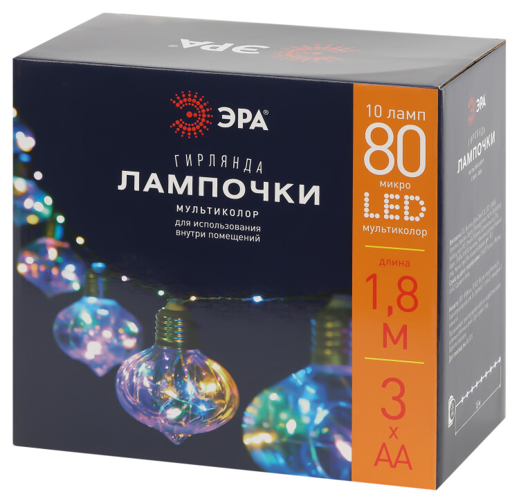 Светодиодная новогодняя гирлянда ЭРА ЕGNIG - 80M нить Лампочки на батарейках 1,8 м мультиколор 80 microLED