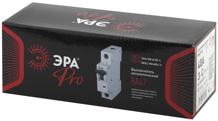 Выключатель автоматический 3-полюсный (3P) 40А хар. C 6000кА ЭРА (Энергия света) 44 Модульное оборудование