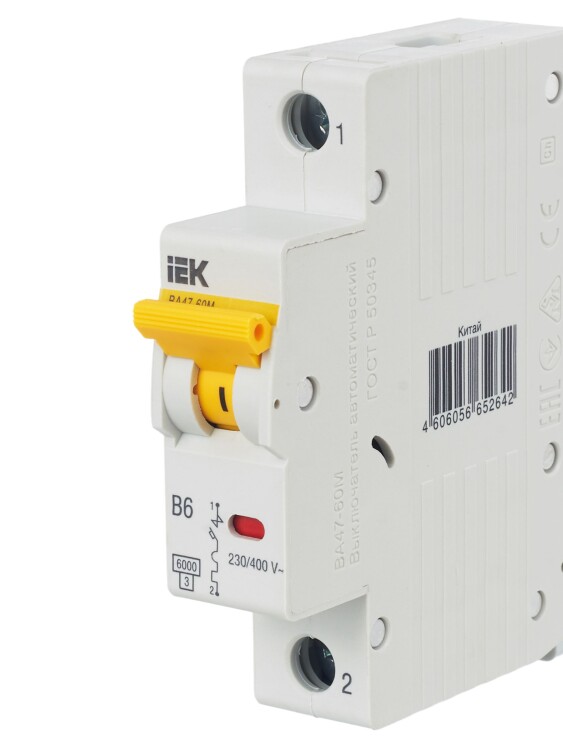 Автомат. выкл. 1-пол. 6А тип B 6кА серия ВА47-60M IEK