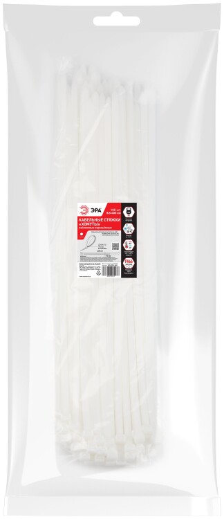 Кабельная стяжка ЭРА NO-225-168 (хомут) нейлоновая 8.8 х 400 мм белая (100 шт/уп)
