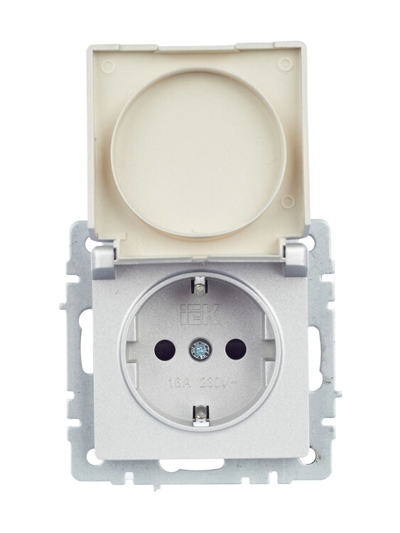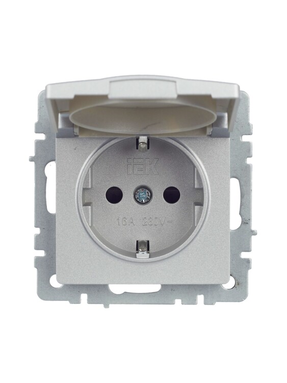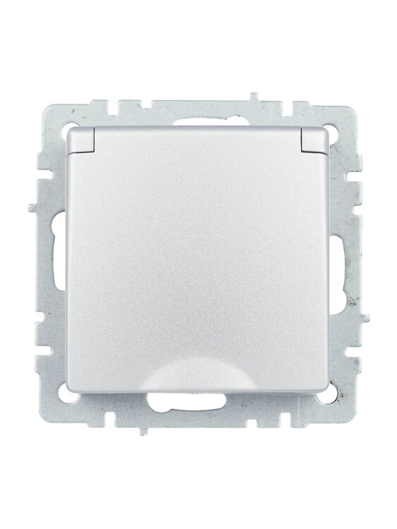 Розетка 2P+E с защитными шторками и крышкой 16А IP44 РСбш10-3-44-БрА алюминий BRITE
