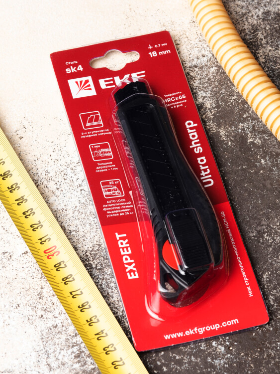 Нож строительно-монтажный 18 мм НСМ-50 (18мм)(SK4) Heavy Duty (до 25 кг) EKF Expert