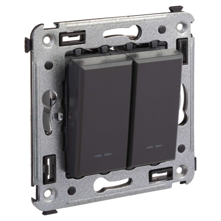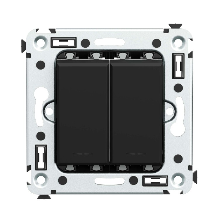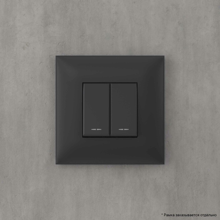 Выключатель двухклавишный в стену, "Avanti", "Черный матовый"