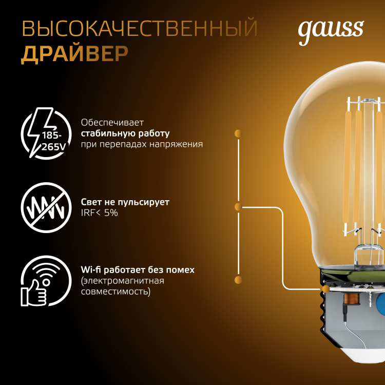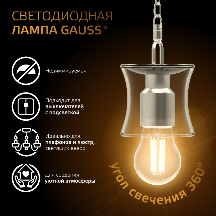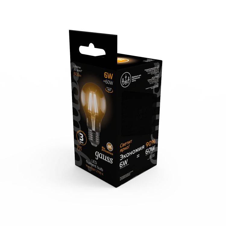 Лампа светодиодная 6 Вт 230В Е27 Filament А60, тёплый 2700К