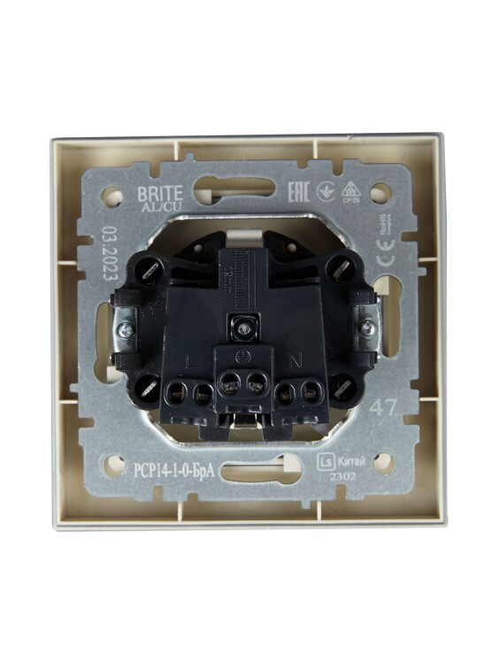 Розетка 2P+E с защитными шторками 16А в сборе РСР14-1-0-БрА алюминий BRITE