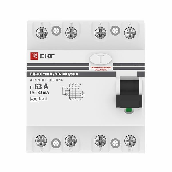 Устройство Защитного Отключения ВД-100 4P 63А/ 30мА (электр, тип А) EKF PROxima