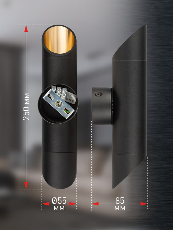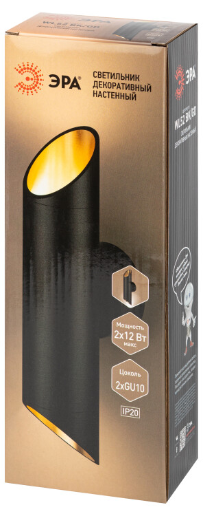 Светильник настенный ЭРА WL52 BK/GD 2*GU10 2*12Вт IP20 черный, золото