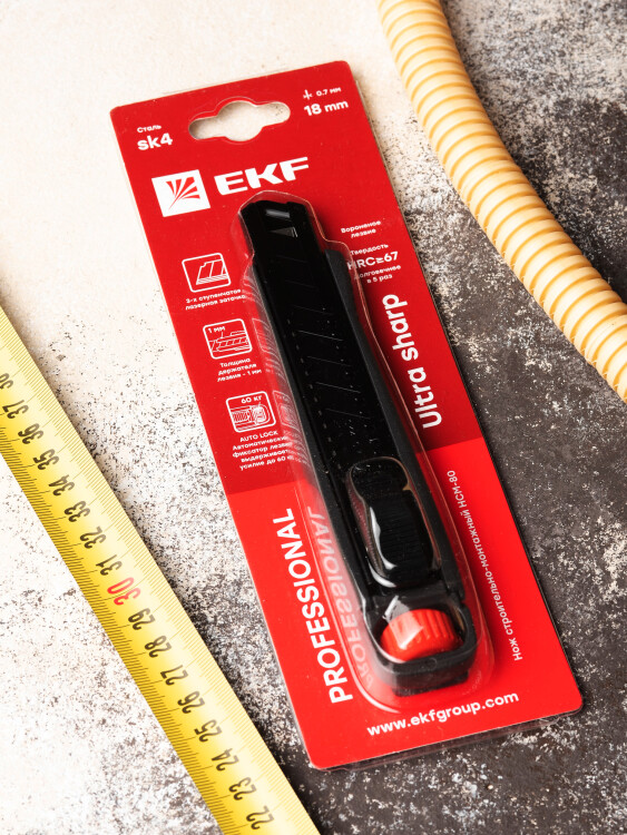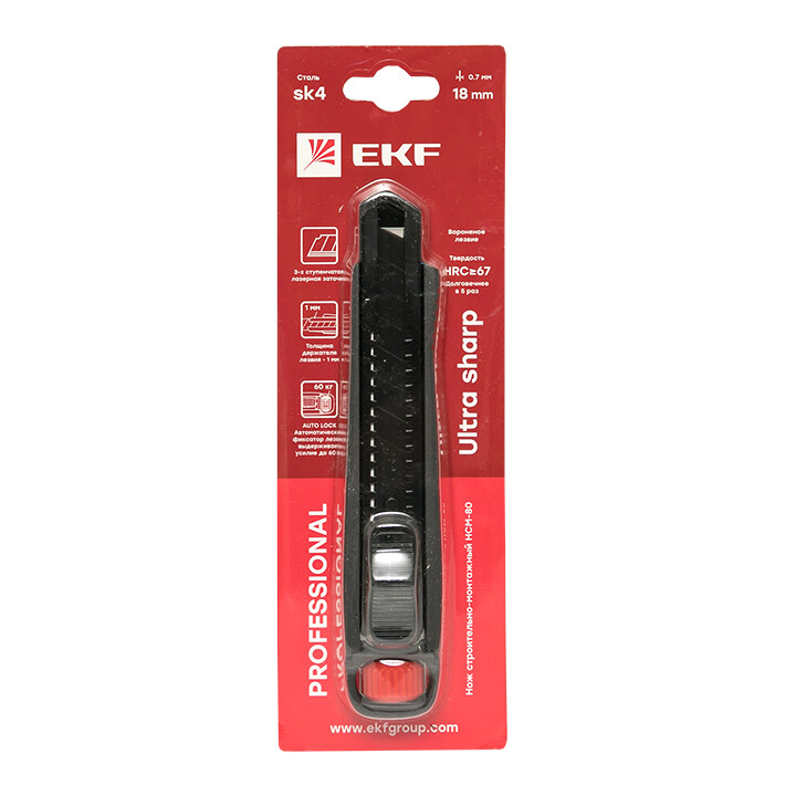 Нож строительно-монтажный 18 мм НСМ-80 (SK4) Heavy Duty (до 60 кг) EKF Professional