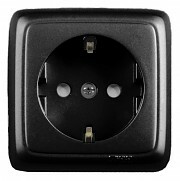 Розетка 2P+E со шторками винт.зажим изол.пластина черный металлик Hegel