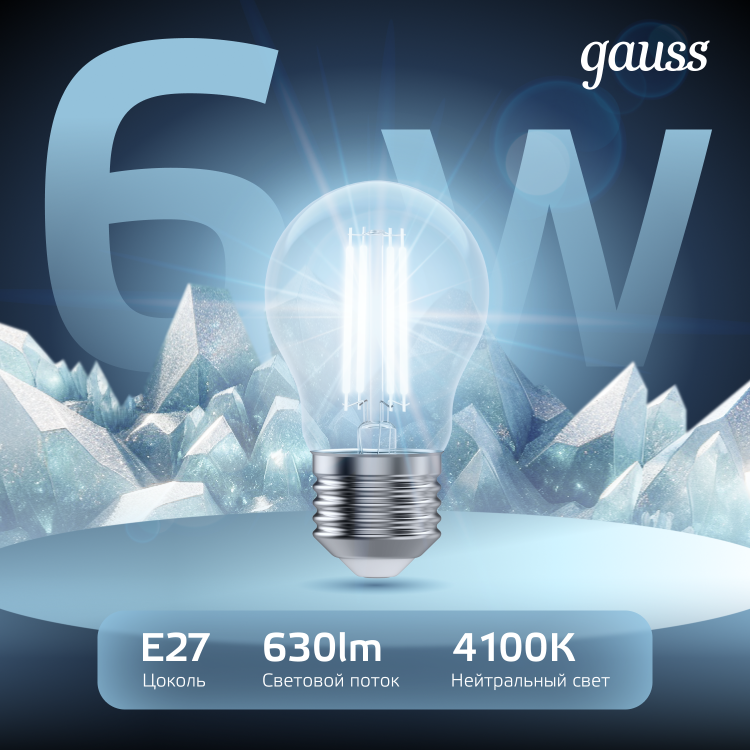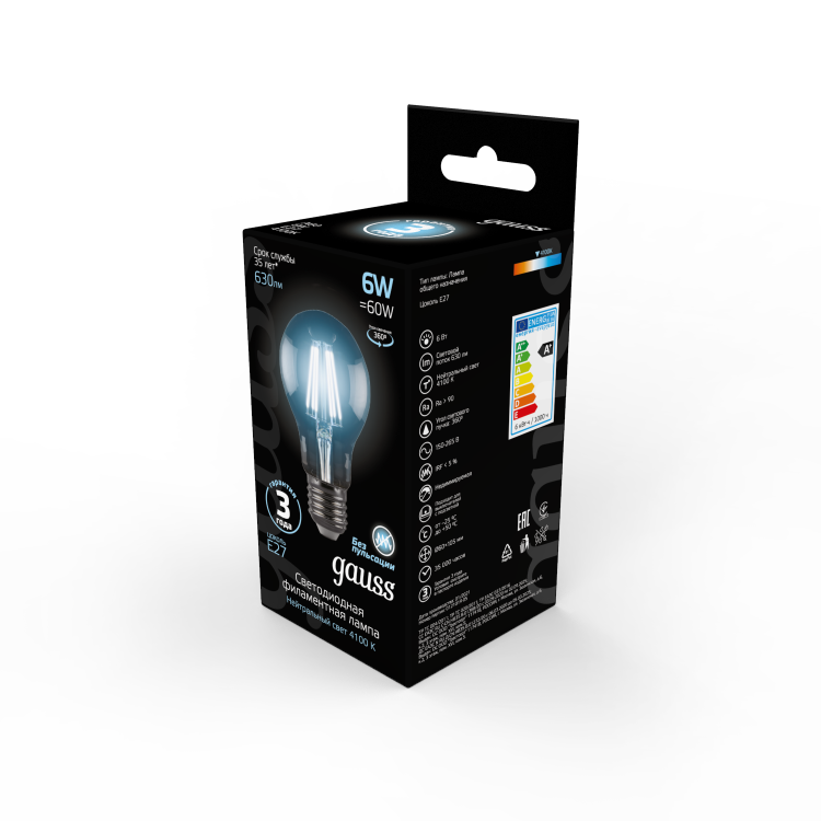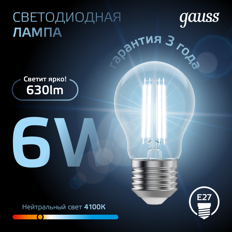Лампа светодиодная 6 Вт 230В Е27 Filament А60, холодный 4100К
