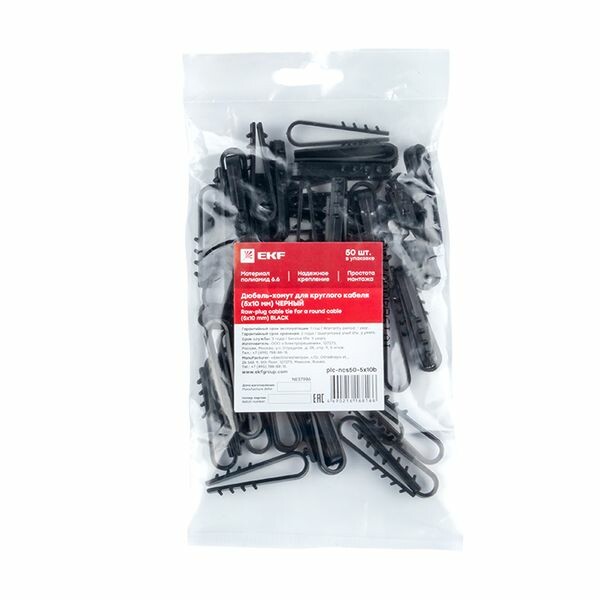 Дюбель-хомут для круглого кабеля (5-10мм) черный (50шт.) EKF PROxima