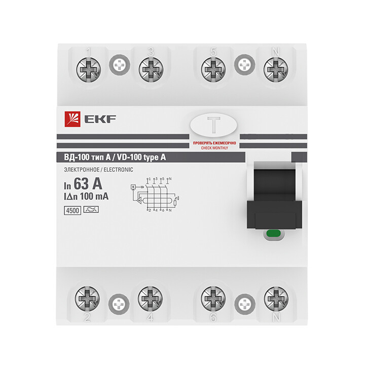 Устройство Защитного Отключения ВД-100 4P 63А/100мА (электр, тип А) EKF PROxima