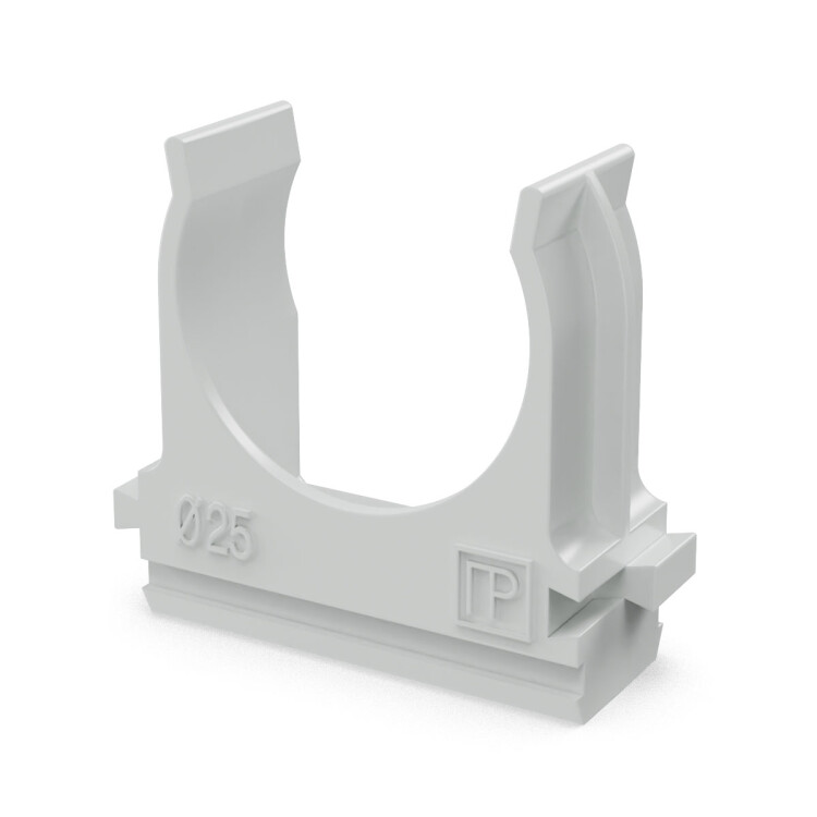 Крепёж-клипса для труб d25 мм безгалогенная (HF) атмосферостойкая серая (100шт/1000шт уп/кор) Промру