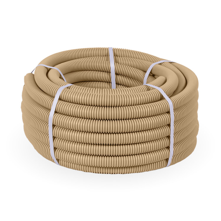 Труба ПВХ гибкая гофрированная д.25 мм, лёгкая, с протяжкой, цвет сосна, (Бухта 50м)