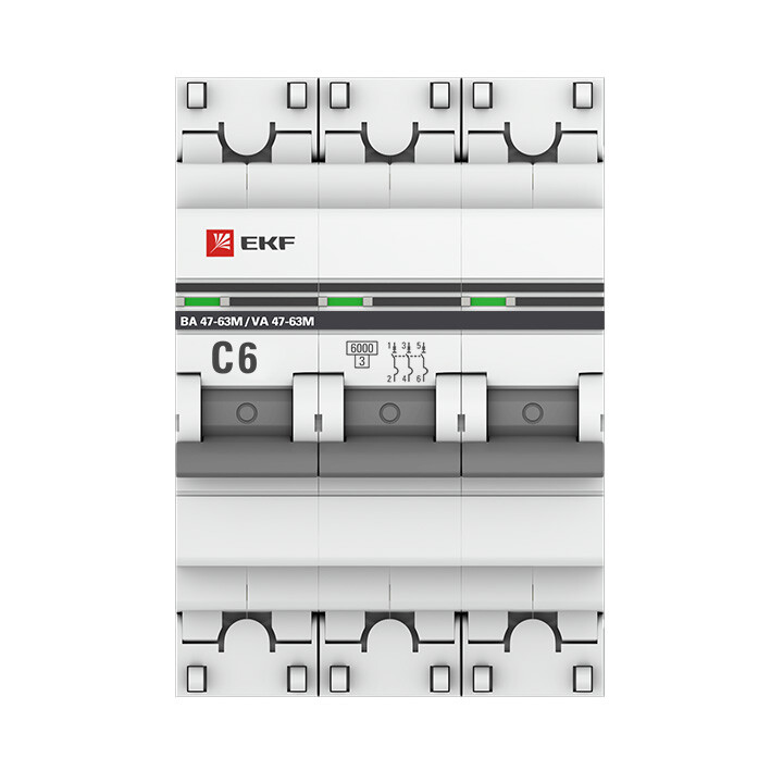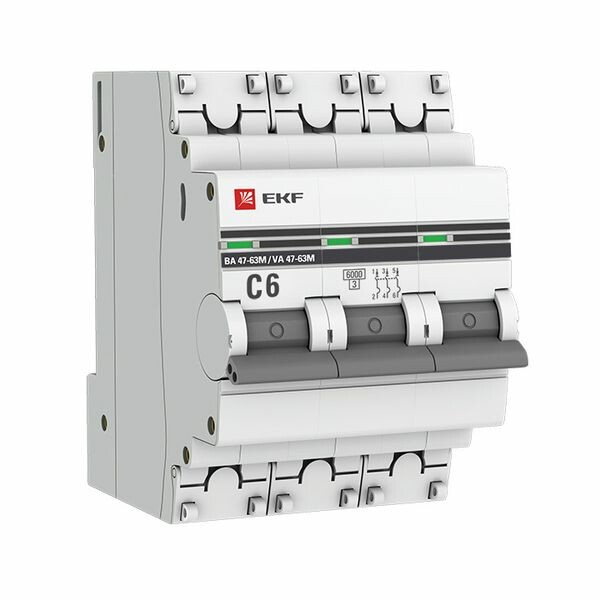 Автоматический выключатель 3P 6А (C) 6кА ВА 47-63M без теплового расцепителя EKF PROxima