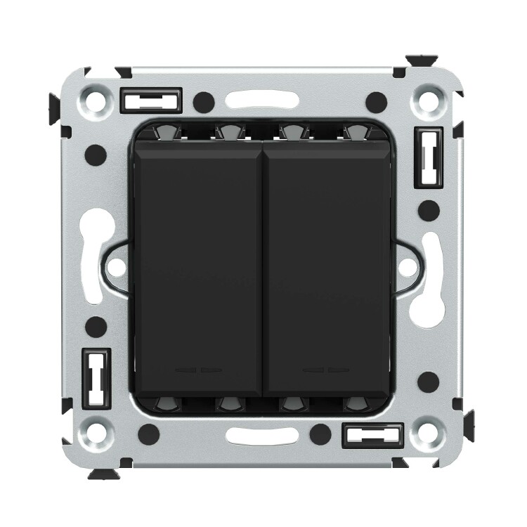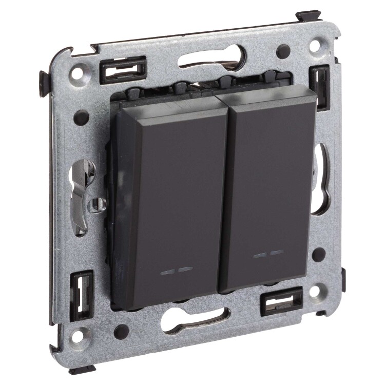 Переключатель двухклавишный в стену, "Avanti", "Черный матовый"