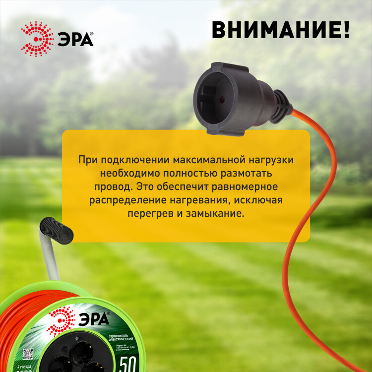 Удлинитель силовой ЭРА RP-4e-3x1.5-50m на пластиковой катушке c заземлением 4 розетки 50м ПВС 3х1,5мм2