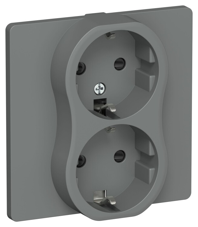 Розетка 2х2P+E со шторками в сборе Classic 16А РСш12-0-К-ФлМА мокрый асфальт FLITE