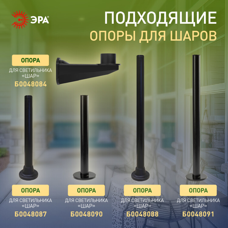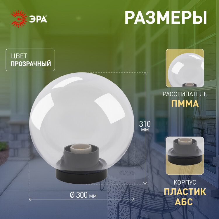 Садово-парковый светильник ЭРА НТУ 01-100-302 шар прозрачный на опору / кронштейн IP44 Е27 max100Вт d300mm