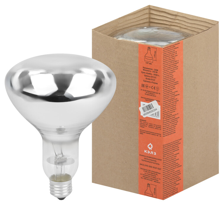 Инфракрасная лампа ЭРА ИКЗ 220-250 R127 для обогрева животных 220-250 Вт Е27