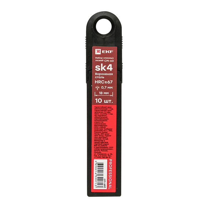 Набор сменных лезвий 18 мм СМ-60 (10 шт, вороненные, SK4, 7 сегментов) EKF Professional